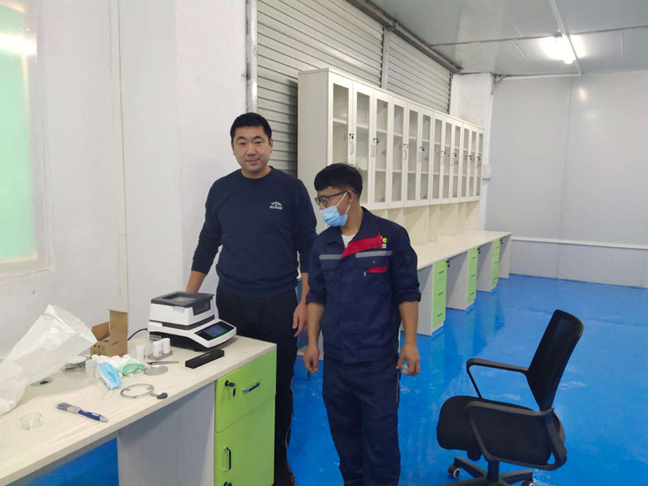 用户本次采购的是我司一批实验室器材,分别为:VM-E01型卤素水分测定仪、AC200型电子天平、WKT-300A型固体密度计、WKT-400T型熔体流动速率仪,WKT2-12-12型马弗炉。维科美拓技术服务人员刚到客户厂时,客户厂里环氧地坪刚建好2天,实验室整体环境可以,暂未安装空调,木质办公桌临时充当试验台。电工临时接线插座,实验室只有220V电,没有380V电源,马弗炉拉到配电房附近临时安装通电。