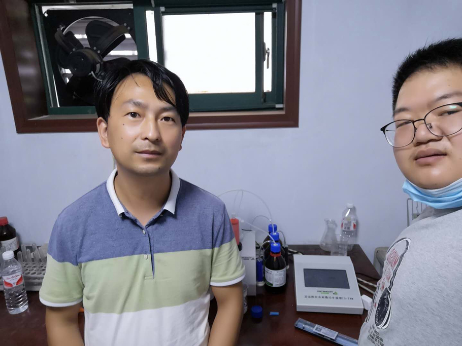 客户在收到维科美拓寄过去的仪器之后,已经将仪器取了出来,并进行了简单的安装。所以维科美拓技术工程师到达现场之后就没有再和客户校对仪器的配件了,直接将客户安装的不是很完善的地方进行了简单的修改,维科美拓技术工程师将客户的试剂瓶和溶剂瓶进行了对调,因为试剂怕光,所以试剂瓶要使用棕色的瓶子。维科美拓技术工程师对废液瓶上橡胶塞也进行了简单的尺寸调整,并给客户安装上了试剂架。在简单的安装调整之后,维科美拓技术工程师对客户的样品进行了实验,首先用甲醇对客户的样品进行了溶解,发现客户的样品可以很好的进行溶解。所以维科美拓技术工程师直接对样品进行试验。由于客户的样品溶解性很好,所以测试的结果也很稳定,和客户之前在第三方处得到的结果基本吻合,客户对维科美拓的仪器很满意。