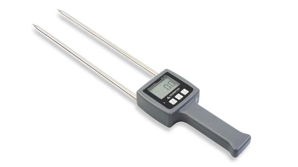 2、将探针插入被测物中,使被测物与探针良好接触,待数值稳定后,显示的数字即为被检测物的水分值。